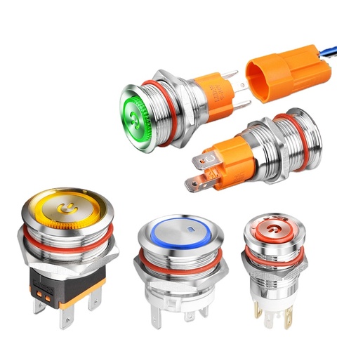 Lanboo 16Mm 19Mm Led Licht Roestvrij Staal Drukknop Schakelaars 1no 12V 24V 220V Zelfsluitende Reset 15a Elektronische Structuur